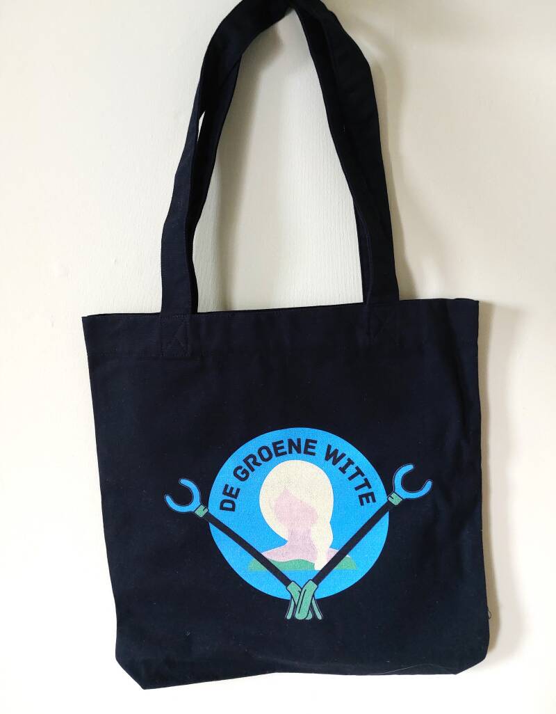 Merch is iets waar ik lang over heb zitten dubben, want het liefst koop ik niks of in ieder geval zo min mogelijk nieuwe spullen. Toch wilde ik graag de zichtbaarheid van @degroenewitte verbeteren. Na een oproep op mijn instagrampagina of trouwe volgers nog zwarte canvas-tassen hadden liggen die niet gebruikt werden, kreeg ik van een aantal mensen hele behulpzame reacties. Helaas was het aanbod niet groot genoeg en zaten bij de meeste tassen wel een opdruk; ik ging verder nadenken en rondkijken.